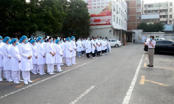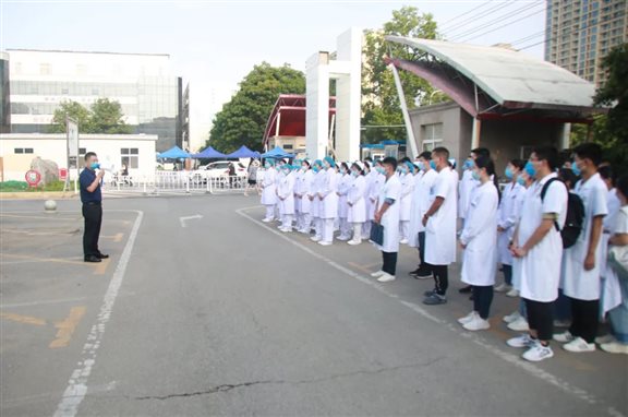8月5日上午七时,一场别开生面的动员会在漯河市中心医院院内举行,2021级新入职员工着装整齐,严阵以待,等待他们的将是一场特殊的考验。