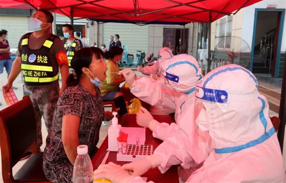 今天在田嘴庄村为村民核酸采样是最快的,在村支部书记的提前部署、高效组织下,我们到位后一刻不停、分批上阵、高效采样。