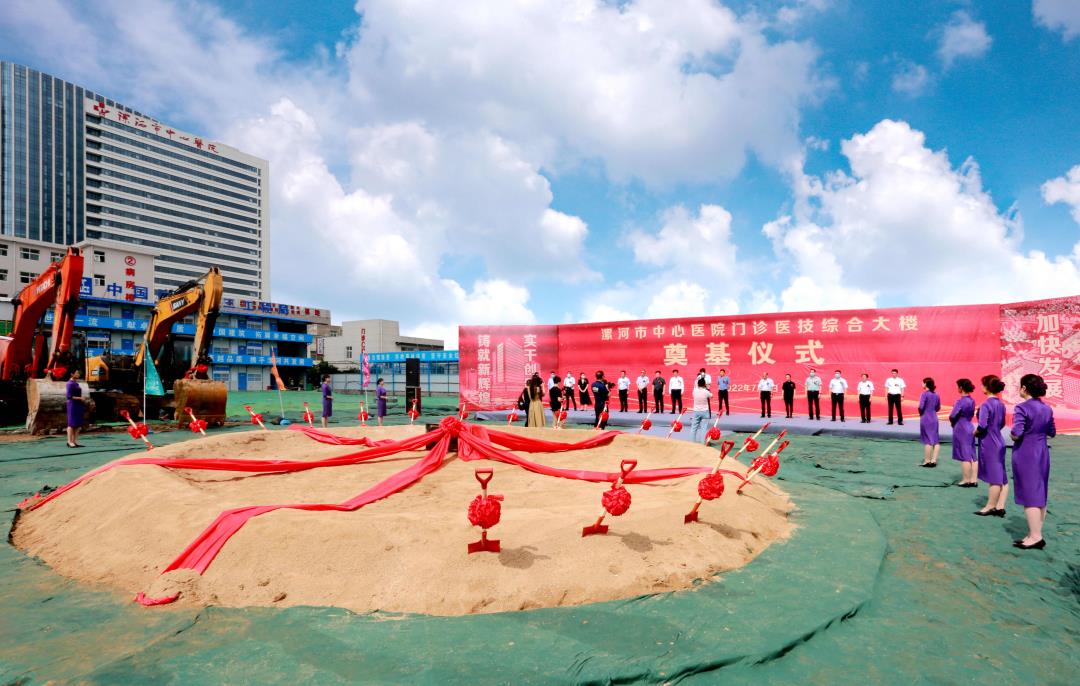 出席领导共同为漯河市中心医院门诊医技综合大楼项目培土奠基。