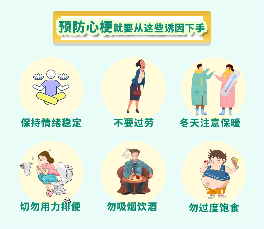 急性心肌梗死是由于冠状动脉闭塞引起冠脉的血流中断,使部分心肌因严重持久的缺血缺氧而发生局部坏死。典型的心肌梗死症状表现为胸骨后剧烈持久的压榨性疼痛,有濒死感,还会出现恶心呕吐、上腹胀痛等,病情严重者甚至会出现休克或心力衰竭、甚至死亡。胸闷、胸痛等是急性心梗的“前驱症状”,出现症状持续时间超过5分钟需要警惕,20分钟要高度怀疑心梗。