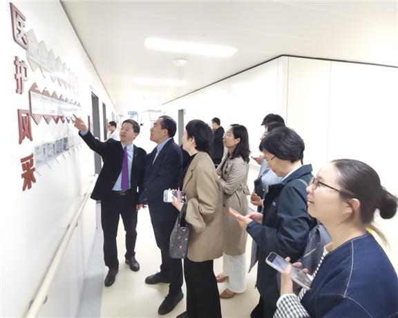 娄永利一行在高血压科谢桥涛主任的陪同下实地参观了高血压科病区,对科室“诊疗-管理-科普宣教”一体化的规范体系、科室标准化的6S管理及高血压科先进的管理理念给予了肯定。