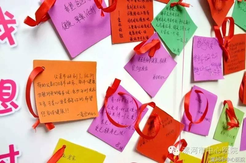 2016年6月17日,漯河市中心医院策划组织的温情六月•父爱如山—“爸爸,我想对你说”父亲节致爱特别活动在门诊楼一楼以及1号病房楼一楼顺利开展。通过手机致爱宣言卡片,粘贴父子合影照片和走进病房采访病患家属录制短片等形式,引导院职工、病患及家属吐露出对父亲最真挚的情感。展板悬挂后,来医院进行治疗的病患及家属积极到展板处拿取宣言卡片,认真写下父亲寄语和粘贴照片,活动现场氛围热烈。