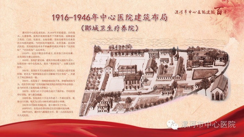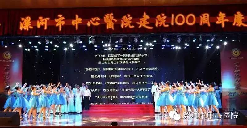 1916-2016,漯河市中心医院走过百年发展历程。百年沧桑巨变,百年成就辉煌,见证了数代中心医院人沐风栉雨,前赴后继,砥砺前行的坚实足迹。