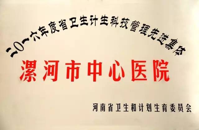 ▲市中心医院荣获“2016年度河南省卫生计生科技管理先进集体”