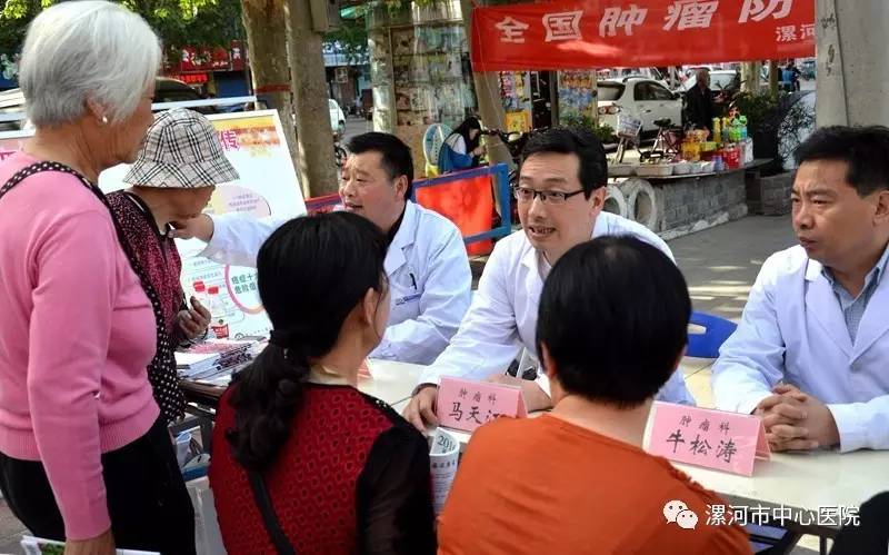 在全国第23届肿瘤防治宣传周来临之际,4月15日上午,漯河市中心医院、漯河市抗癌协会一行十余人来到烟厂花园广场,开展了主题为“科学抗癌、关爱生命”的宣传活动。