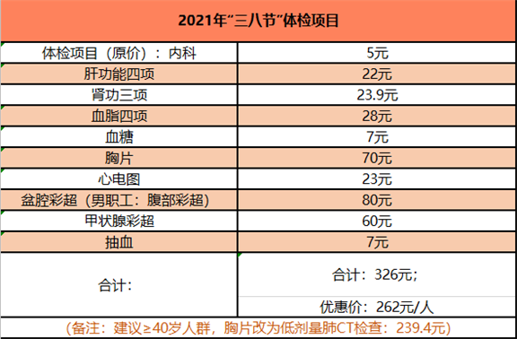 为保障妇女的健康检查,切实做好妇女“两癌”(乳腺癌、宫颈癌)筛查工作,提高妇女健康水平,弘扬关爱妇女健康理念,漯河市中心医院健康管理中心在“三八”国际妇女节来临之际,特别推出乳腺癌筛查、宫颈癌筛查和妇科检查几大类检查项目优惠套餐活动,送给健康美丽的女士们贴心的专属礼物。