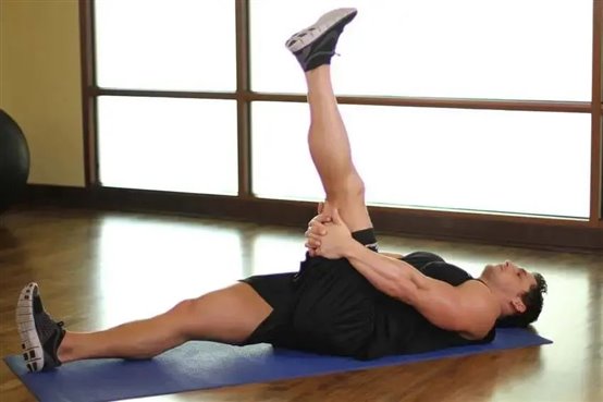 轻轻地将腿拉向身体,直到大腿后部感到轻微的紧张。