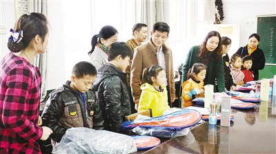 虽然天气寒冷,又下着小雨,但挡不住该院医护人员关爱孩子成长的热情。他们带着精心准备的保温杯、羽毛球、书包、文具盒、笔记本等文体用品,及该院社会服务科组织全院职工捐献的两大箱儿童衣物一早从医院出发,利用课间时间为孩子们送去温暖和祝福。