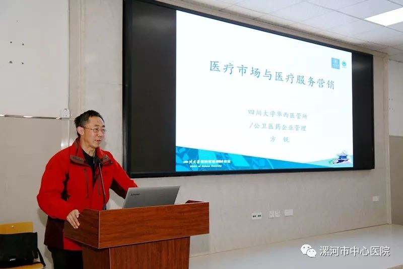 为进一步加强学科建设,强化医院品牌构建与推广,构建有价值的医患关系,12月12日,我院特邀请到四川大学华西医院医院管理研究所特聘专家方锐教授来院做专题讲座,院党委书记王向良,副院长谭占国、杨秀慧,纪委书记张丰月出席讲座,全院各临床科室主任、护士长、业务骨干及全体行管人员近300人参加了培训会。