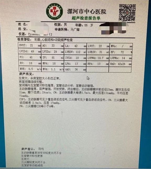 患者于先生,高血压史30多年,在2月26日外出办事时,突感心慌、头晕,随后意识丧失,晕倒在地,急诊至别院,行心电图及化验检查,为进一步诊治,转入我院,完善相关检查,心脏彩超:主动脉瓣重度狭窄并轻度关闭不全,左室壁对称性肥厚,左房大,三尖瓣轻度关闭不全,左室舒张功能降低,左室最大压差131mmhg。