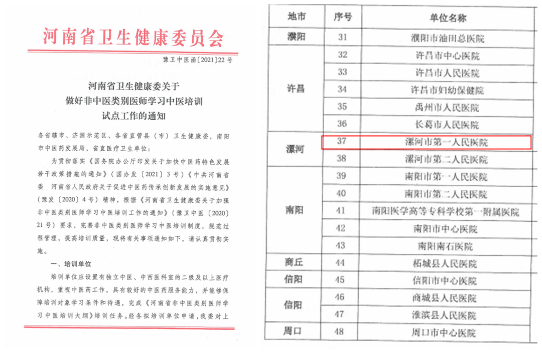 据悉,漯河市中心医院于2021年4月通过评选,成为全省首批70个西学中培训试点单位之一。医院成立了院长王海蛟任组长,副院长付秀虹任副组长的非中医类别医师学习中医培训工作小组,下设西学中培训办公室,制定培训工作实施方案。基地通过购买培训教材,进行师资培训;派出多名师资到省儿童医院进行学习交流;聘请外院名师专家进行线上授课;制定理论教学计划和实践技能培训计划等多种形式持续提升培训质量。