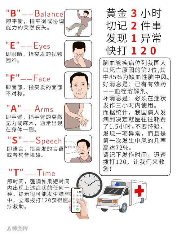 为了有效改善患者预后,可以采取“中风120”三步识别法,帮助患者早期、快速识别中风⑥。