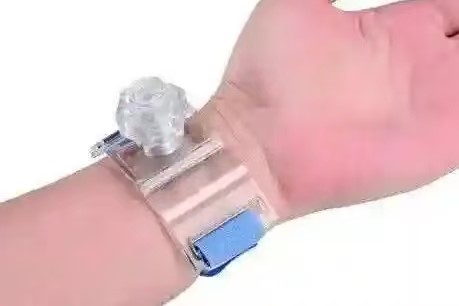 冠状动脉造影结束后,缓慢退出造影导管,对手术区域进行包扎止血。不同手术入路的包扎方式可能有所差异,下图展示的是经桡动脉入路常用的止血器压迫止血方式: