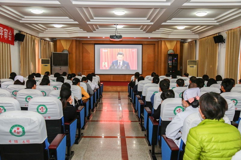 院长王海蛟、副院长谭占国、工会主席刘东亮和医院中层干部、党员以及科室职工代表在院第二会议室集中观看了开幕会,共同聆听了中共中央总书记习近平代表十八届中央委员会作的报告。
