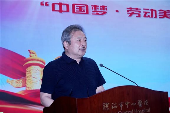 栉风沐雨一百载,春华秋实谱华章。为庆祝中国共产党建党100周年,广泛开展“永远跟党走”群众性主题宣传教育活动,扎实推进党史学习教育,6月4日下午,漯河市中心医院举办“中国梦·劳动美——永远跟党走 奋进新征程”职工演讲比赛。工会主席崔红领出席比赛并讲话。