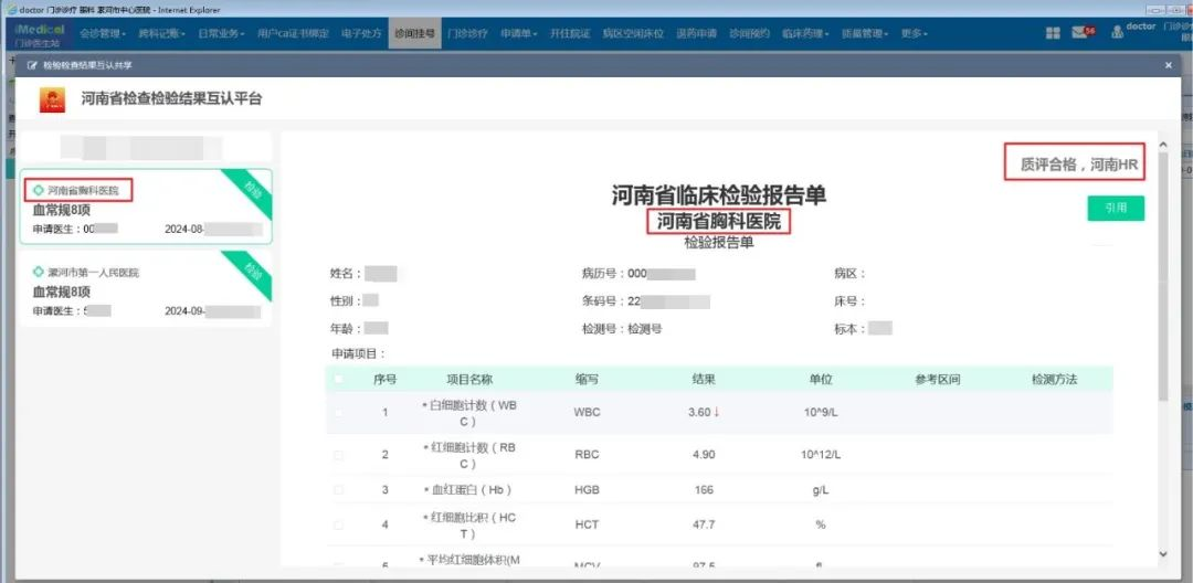 近段时间,有细心的患者发现在其他医院已经做过的检查检验,只要报告单上有“质评合格,河南HR”互认标识,且检查检验的时间、技术规范满足临床诊疗需求的,来漯河市中心医院就诊就不需要重复检查了,既省时又省钱!