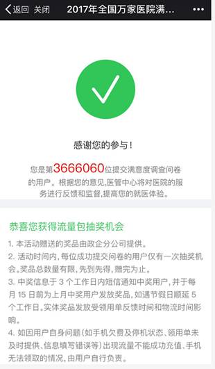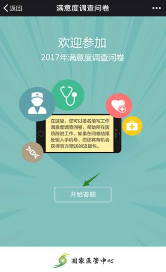 根据《国家卫生计生委办公厅关于开展医院满意度调查试点工作的通知》文件要求,为了深入推动改善医疗服务,进一步改善患者的医疗服务体验,提升就医满意度,我们邀请您参与由国家卫生计生委医疗管理服务中心2017年满意度问卷调查活动。