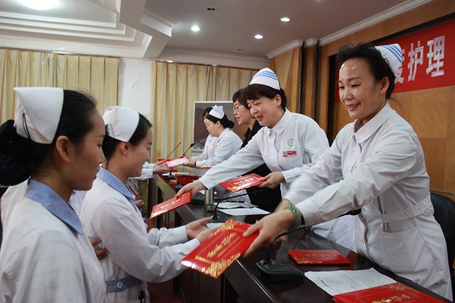 张丰月对对受表彰的科室、带教老师及实习生表示热烈地祝贺,对护理教学工作给予了充分地肯定和高度地评价,并对即将走上工作岗位的同学们提出了殷切希望,她说,希望实习生们能够顺利走上工作岗位,在今后的工作中传承对医术的敬畏之心, 传承对医学事业的执着追求, 传承中华传统美德,学会宽容,融入团队,学会合作,懂得感恩。同时希望受表彰的科室护士长及带教老师再接再厉,在护理部及全院护理人员的共同努力下,推动我院实习生带教工作更上一个新的台阶。