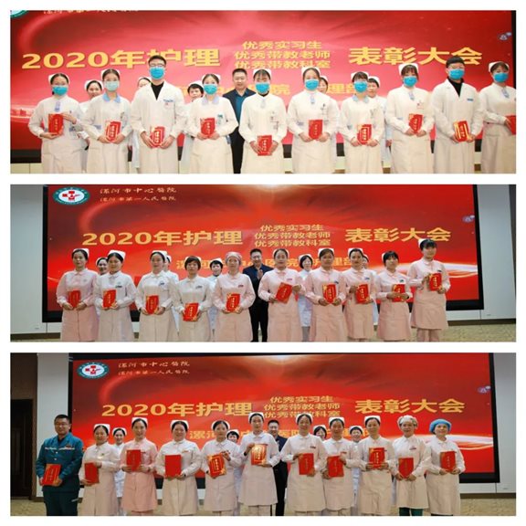 随后,对在2020年度护理实习工作中涌现出的丁方园等51名优秀实习生、姜姗等47名优秀带教老师、急救中心等11个优秀带教科室及陈梅等14名2020年度护理实习生理论及技能操作竞赛活动获奖人员颁发了荣誉证书和奖品。