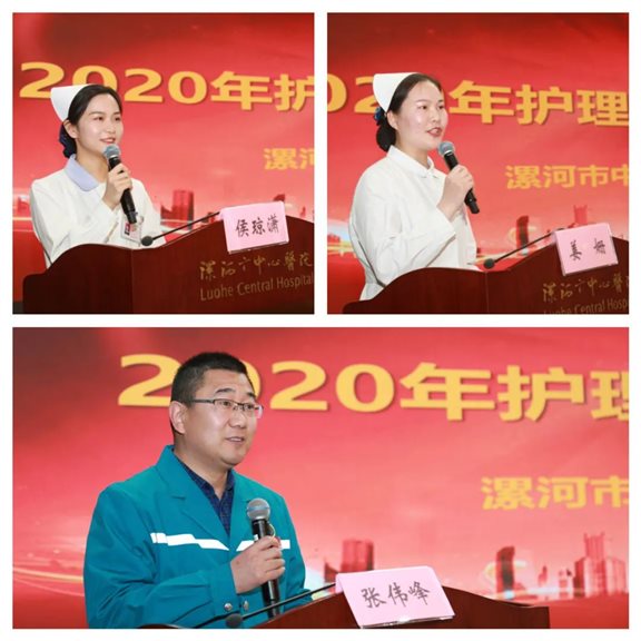 急救中心护士长张伟峰代表优秀带教科室在大会上发言,他以自己的经验向同学们分享了三点初入职场的想法,一是要以一种快乐、积极的心态去对待工作;二是一定要有明确的目标及工作计划;三是多向我们的护理前辈们学习,多咨询、多请教。