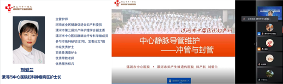 会议特别邀请到中华护理学会京外静脉治疗建设基地负责人、河南省人民医院介入手术室科护士长赵文利教授,漯河市中心医院产科二病区护士长付萍,漯河市中心医院RICU护士长赵亚奇、漯河市中心医院妇科肿瘤病区护士长刘爱兰、漯河市中心医院肿瘤三病区护士长丁瑞娟等专家线上授课。