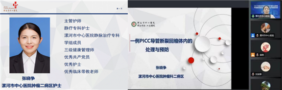 漯河市中心医院肿瘤科二病区静疗专科护士张晓争分享《一例PICC导管断裂回缩体内的处理与预防》