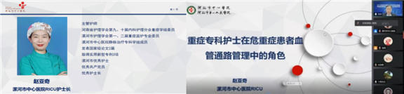 漯河市中心医院RICU护士长赵亚奇讲授《重症专科护士在危重症患者血管通路管理中的角色》
