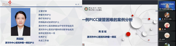 漯河市中心医院肿瘤科一病区静疗专科护士周亚配分享《一例PICC拔管困难的案例分析》