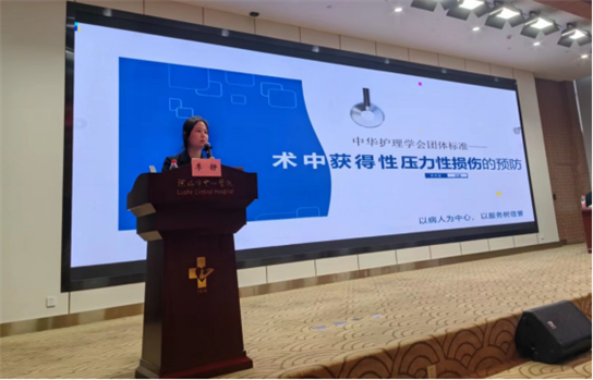 漯河市中心医院手术室护士长李静带我们一起解读了《中华护理学会团体标准-术中获得性压力性损伤的预防》。从风险评估到压力性损伤的预防和护理,相关措施和流程,都一一进行了阐述,总结了量表评定细则的实施,为临床工作指明了方向。前来听课的各位同仁认真听讲,踊跃交流,学术氛围浓厚。