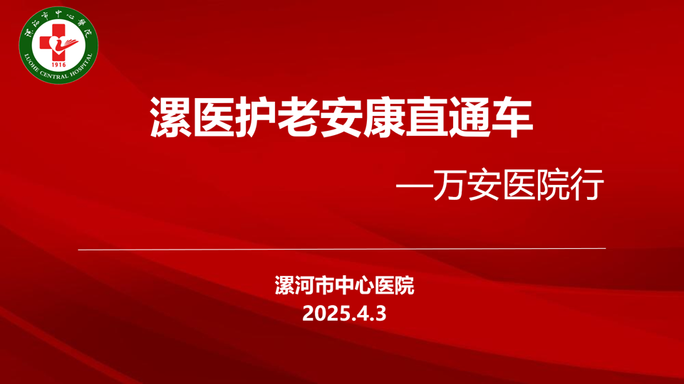 为进一步推进优质医疗资源下沉,提升基层医疗机构的护理服务水平,漯河市中心医院护理团队于2025年4月3日赴万安医院开展“漯医护老安康直通车”沟通交流活动。本次活动以“优质医疗资源下沉和延续护理(互联网+护理)”为主题,旨在通过资源共享和技术指导,推动护理服务的高质量发展。