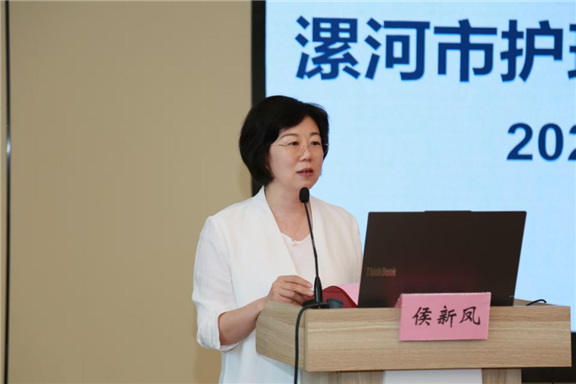 漯河市中心医院党委副书记王瑾致开幕辞。王书记代表漯河市中心医院,对与会同仁表示热烈欢迎和衷心感谢,她强调护理质量是医疗安全的生命线,要求全市护理同仁以“一针一线的精细、一网一格的担当”,织密筑牢全市护理安全网,响应国家和河南省护理专业改进目标,推动我市护理质量迈上新台阶。