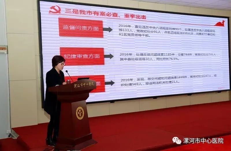 最后,张丰月为大家上了廉政专题党课,她结合医疗行业特点分别从当前的形势、上级要求、监督问责、行风建设四个方面进行了细致讲解,案例生动,内容丰富,达到了良好的效果。