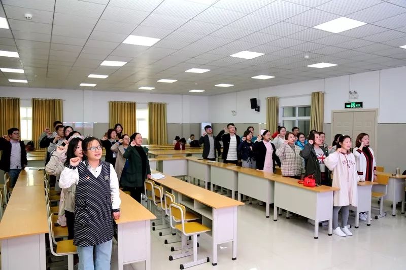 最后,全场起立,面对国旗,由党办副主任刘钟灵带领大家进行宣誓,主题教育实践活动在嘹亮的宣誓声中结束。