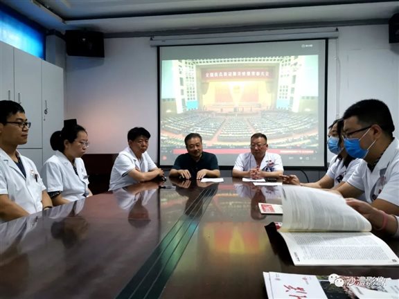 上午10点整,支部党员同志一起收看了全国抗击新冠疫情表彰大会,我院李叶宁同志获得“全国抗击新冠疫情先进个人”荣誉称号。林书记号召广大党员要深入学习李叶宁同志的先进事迹,继续发扬抗疫精神,为推动医院健康快速发展做出新的、更大的贡献,用实际行动为健康漯河的建设助力!