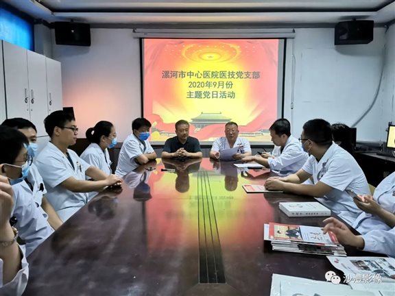 在院党委的安排和指导下,医技党支部书记林运智同志组织支部党员于2020年9月8日上午9点40在影像科业务学习室开展本月主题党日活动,院工会主席崔红领同志以普通党员的身份参加本次活动。
