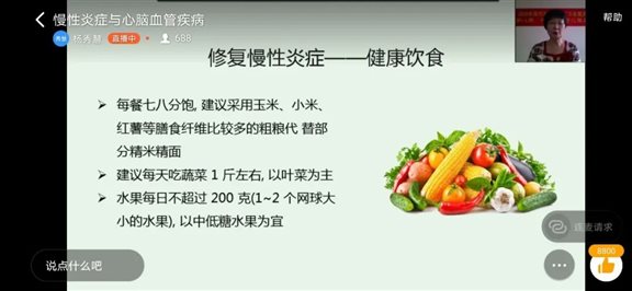 此次授课为“慢性炎症与心脑血管疾病”知识专题讲座。杨秀慧教授根据自己多年的从医经验及掌握的相关情况,以图文、数据方式和真实案例,详细讲授了炎症的相关内容,围绕什么是炎症、常见心脑血管疾病、肠道菌群与心脑血管疾病、如何修复肠漏等方面的内容进行深入细致的讲解。并从饮食、运动、心理等方面指导如何调整肠道菌群,从而预防心脑血管疾病,着重讲解了生活方式控制对预防心脑血管疾病的重要性,倡导大家远离不良生活习惯,保持心理平衡,用积极向上的心态投入到生活和工作当中。