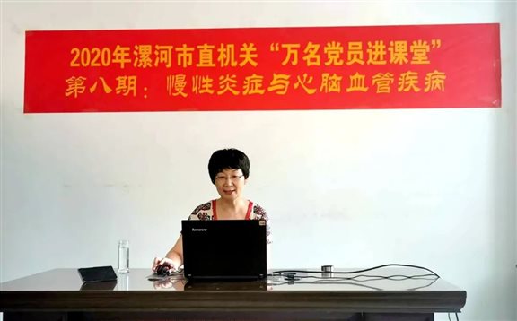 为增强党员干部健康知识,普及心脑血管疾病防治常识, 8月26日,漯河市中心医院副院长、心血管内科主任医师、二级教授杨秀慧应邀在市委市直机关工委主办的2020年漯河市直机关“万名党员进课堂”第八期专题讲座上通过网络平台进行线上直播授课,市直各单位共733名党员参加了此次直播学习,点赞数高达10601次。