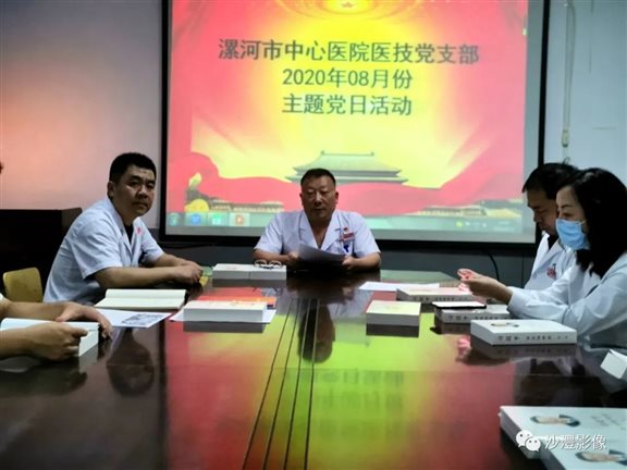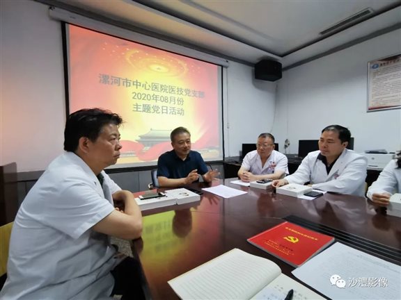 在院党委的监督和指导下,医技党支部书记林运智同志组织支部党员于2020年08月13日下午4点在影像科业务学习室进行了本月主题党日活动,院工会主席崔红领同志以普通党员身份参加本次活动现场。