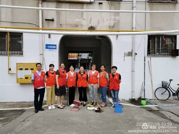 2020年7月18日上午,漯河市中心医院内科第一党支部党员志愿服务队到所分包的“三无小区”——一分院家属院开展卫生清洁活动。此次活动由支部书记胡新荣同志带队,王浩然、杨萍等9名党员志愿者参加。