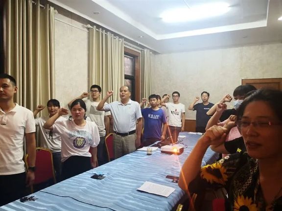 最后,在王瑞书记的带领下,全体党员重温入党誓词,大家高举右手,紧握拳头,庄严宣誓,以此表达为共产主义奋斗终身的决心。