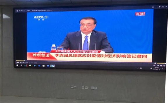 会议第三项,大家一起观看了《李克强总理出席记者会并回答中外记者提问》的视频,学习了《政府工作报告》和两会精神。新冠肺炎疫情,是新中国成立以来我国遭遇的传播速度最快、感染范围最广、防控难度最大的重大突发公共卫生事件。在以习近平同志为核心的党中央坚强领导下,经过全国上下和广大人民群众艰苦卓绝努力并付出牺牲,疫情防控取得重大战略成果。困难不容低估,信心不可动摇,干劲不能松懈,大家纷纷表示对党和政府充满了信心,干劲十足。