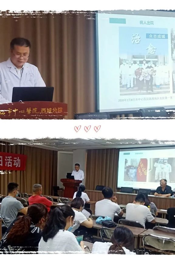 四、抗疫英雄陈朗同志讲述新冠病区的事迹——《我们在一起》,分享了自己在我院隔离病区(七院)工作的亲身经历和感受:从初来的担心害怕到无畏的奉献,到同事、医患之间的和谐、到胜利的喜悦。