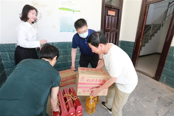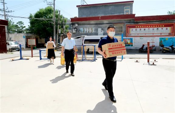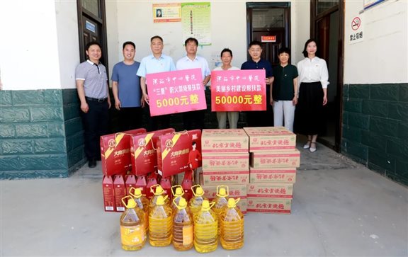 “三夏”麦收时节,恰值帮扶日活动来临之际,6月4日上午,漯河市中心医院(漯河市第一人民医院 漯河医专一附院)党委书记王向良、副院长王进带领党办、院办、宣传科等部门工作人员来到医院结对帮扶村——舞阳县吴城镇东王村开展“三夏”帮扶慰问活动,看望慰问贫困户、困难党员、驻村第一书记及禁烧防火队员,为他们送去了食用油、火腿肠、方便面等生活物品,并送去“美丽乡村建设”帮扶款50000元和“三夏”帮扶款5000元。吴城镇党委书记柴向国陪同慰问。