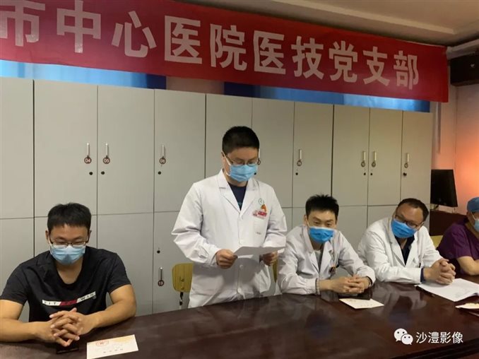 04 医技党支部继续抓紧抓实抓细各项常态化疫情防控措施,在常态化疫情防控中发挥组织作用,引导广大党员绷紧疫情防控这根弦,在做好疫情防控的前提下,充分发挥党员先锋模范作用,助力防控工作。