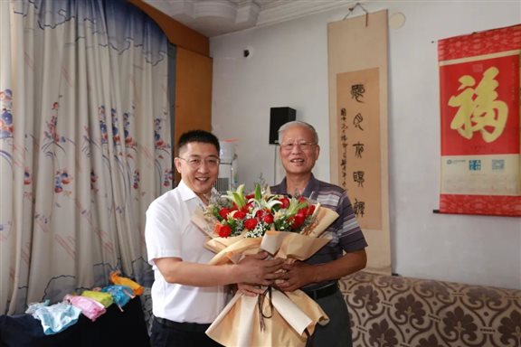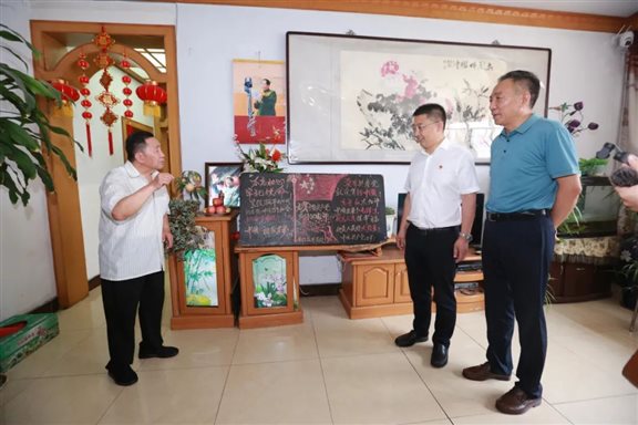 在老党员赵国顺家,他们与老人拉家常,详细询问他的日常生活、身体状况等,为他戴上“光荣在党50年”纪念章并送上鲜花,祝福健康长寿。王向良说,党的事业离不开一代又一代共产党人的接续奋斗,我们要以开展党史学习教育为契机,学习发扬老党员的光荣传统和优良作风,用实际行动践行初心使命,让党创立的社会主义伟大事业世世代代传承下去。赵国顺还向大家展示了他为党的百年华诞创作的诗歌。