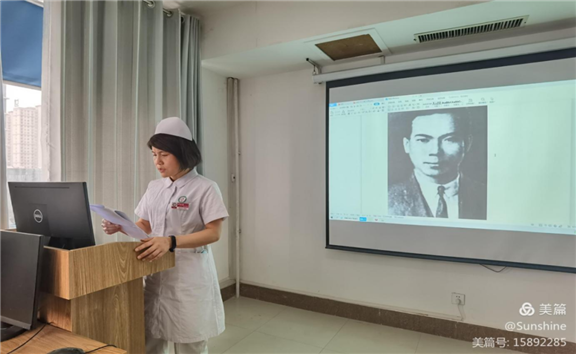 麻醉科党支部李叶宁带领大家学习李大钊的光辉事迹