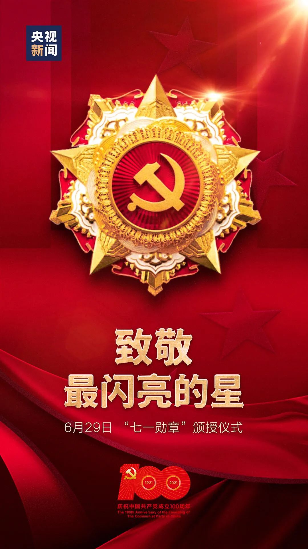 6月29日上午10时,庆祝中国共产党成立100周年“七一勋章”颁授仪式在北京隆重举行。中共中央总书记、国家主席、中央军委主席习近平首次颁授“七一勋章”并发表重要讲话。