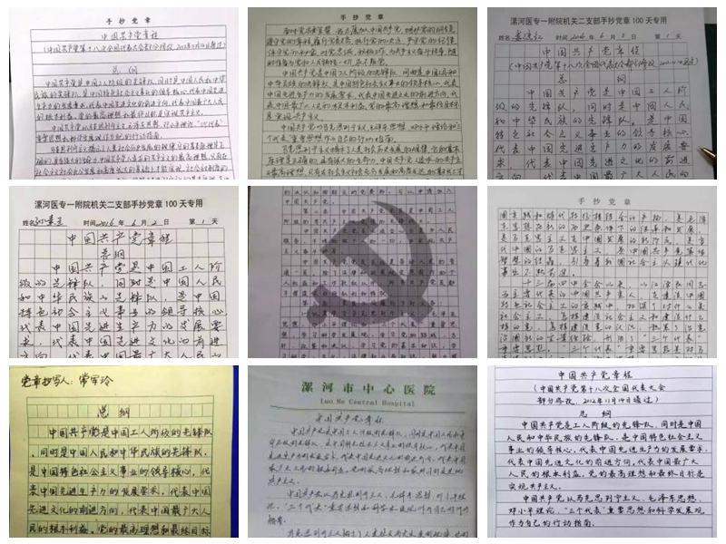 各党支部部分手抄党章作品