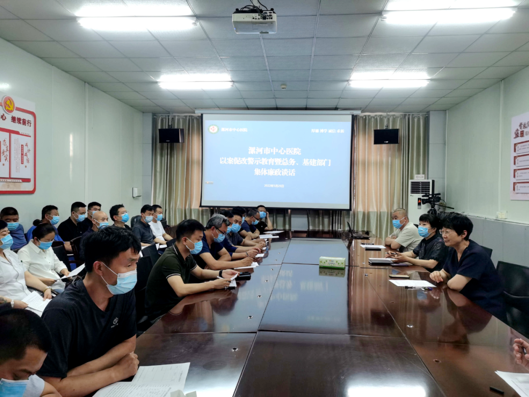 为切实加强医院廉政建设和行业作风建设,提升重点部门廉洁风险防控能力,进一步强化日常监督管理,5月25日下午,漯河市中心医院(漯河市第一人民医院 漯河医专一附院)以案促改警示教育暨总务基建部门集体廉政谈话会在办公楼五楼会议室召开。副院长杨秀慧出席会议,审计监察科科长贾红梅、总务科科长李青山、基建科副科长陈向阳及科室工作人员参会。