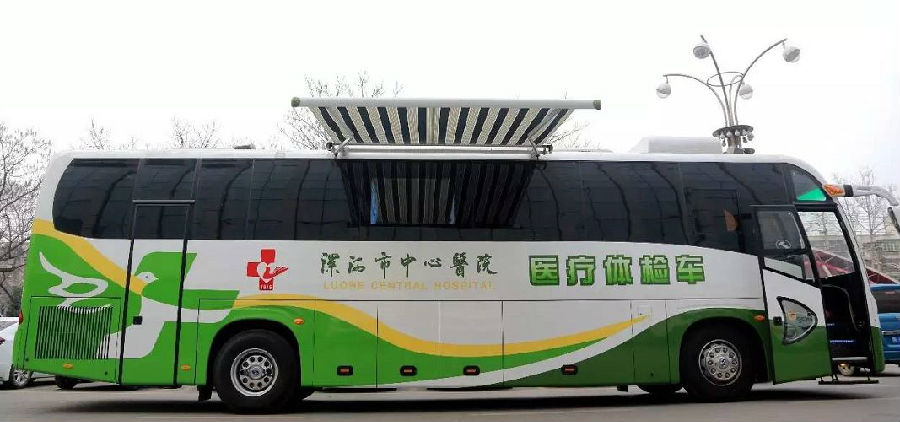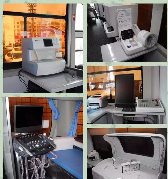 过去,传统的体检方式是体检者来到医院,路途的奔波、耗时的等候、分散的科室等体检过程过于繁琐;现在,这台豪华温馨、设施齐全的移动医疗体检车解决了上述所有难题,她能提供全面的体检项目服务,满足各种人群的体检需要。车上配置了多种领先的仪器设备:如DR数字化摄影系统(可以拍摄胸片、腰椎片等)、心电图机、骨密度测定仪、彩超检查、全自动生化分析仪、五分类血细胞、电脑尿液分析仪及多功能检查床、全自动血压计等先进医疗仪器设备,并配备有中央空调为体检者和工作人员营造舒适的环境。该车还配有网络系统,检查结果可以直接传回医院的信息系统,院内专家能够实时地远程诊断指导。